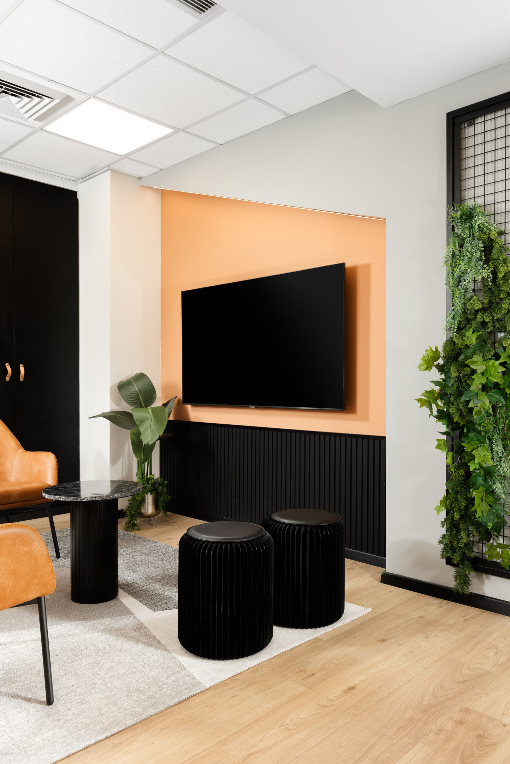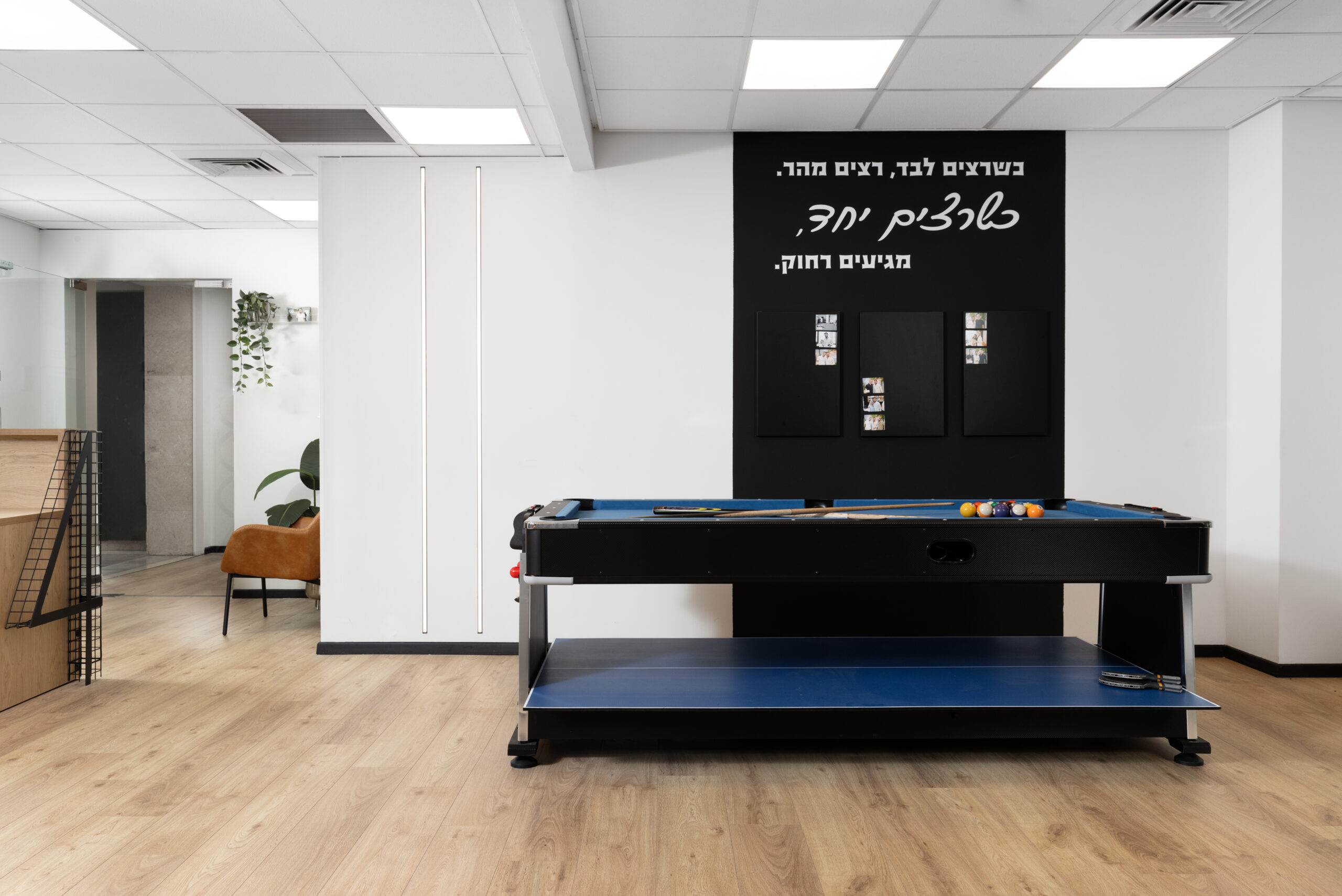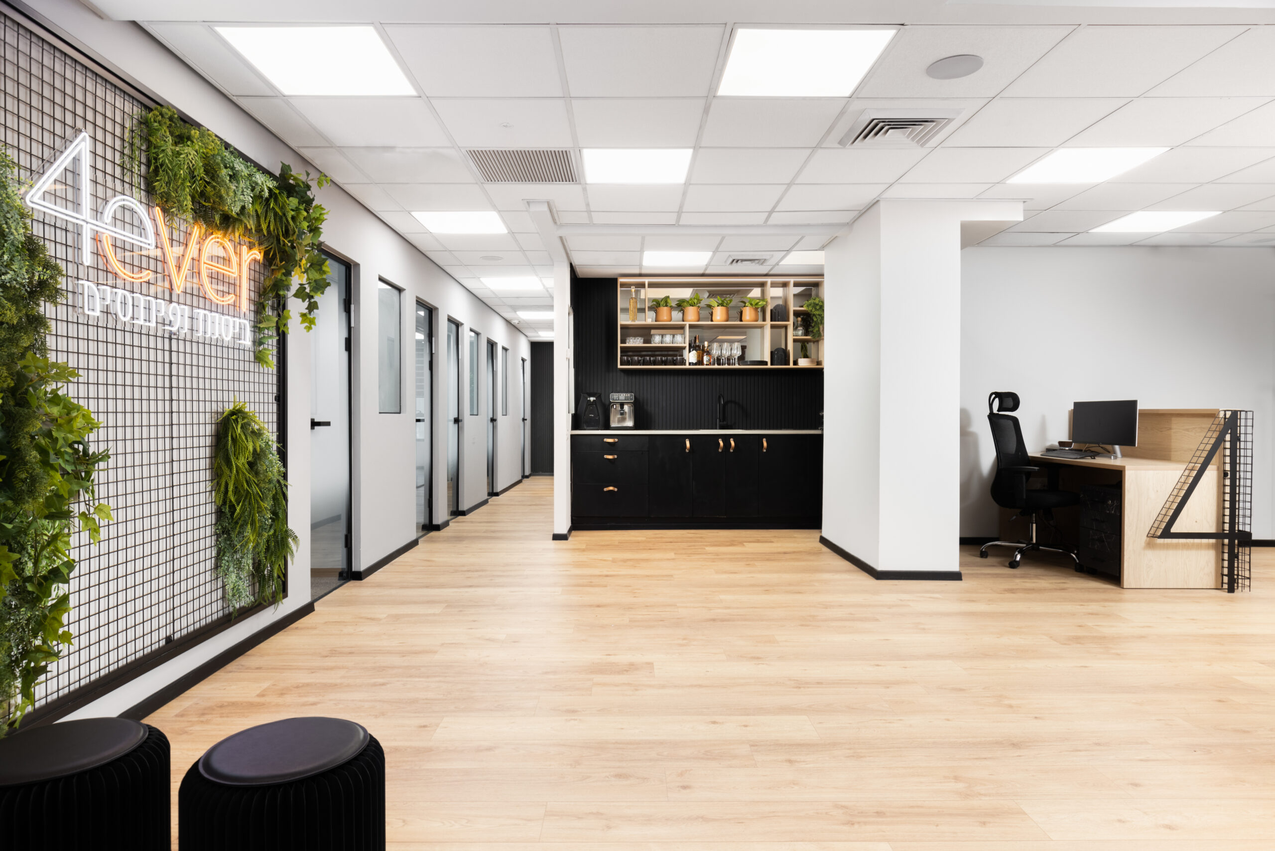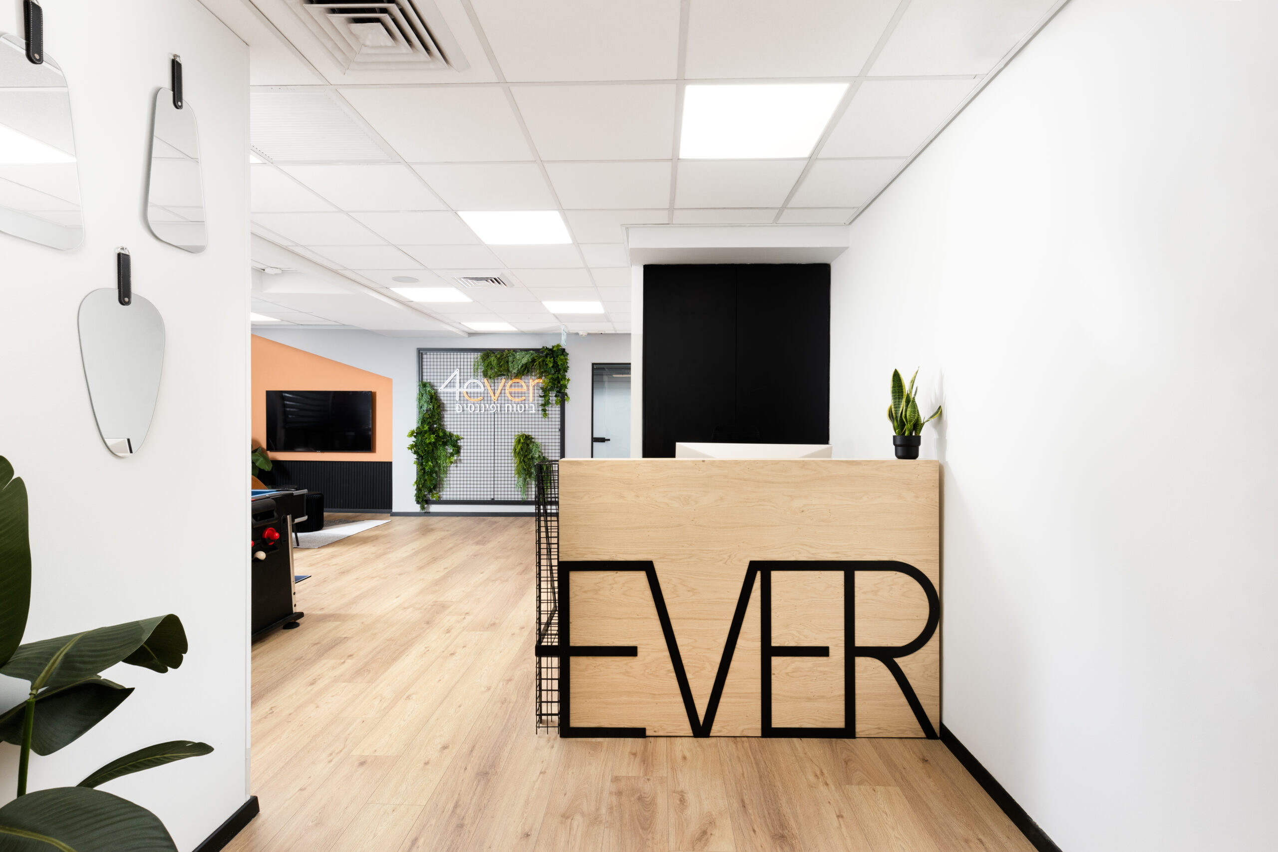 קונספט: המשרד עוצב בסטייל של לופט גברי ומרשים. בתכנון ועיצוב המשרד התחשבנו בצבעוניות המותג וצורניות הלוגו, אשר היווה לנו השראה לעיצוב כולו. תוכלו להבחין בכך בנגרות הייחודית – השימוש המרומז במספר 4 בדלפק ובקיר הכוח בחלל הלאונג’. גווני הלוגו והמותג חוזרים גם בקירות המשרד, בריהוט ובאקססוריז.